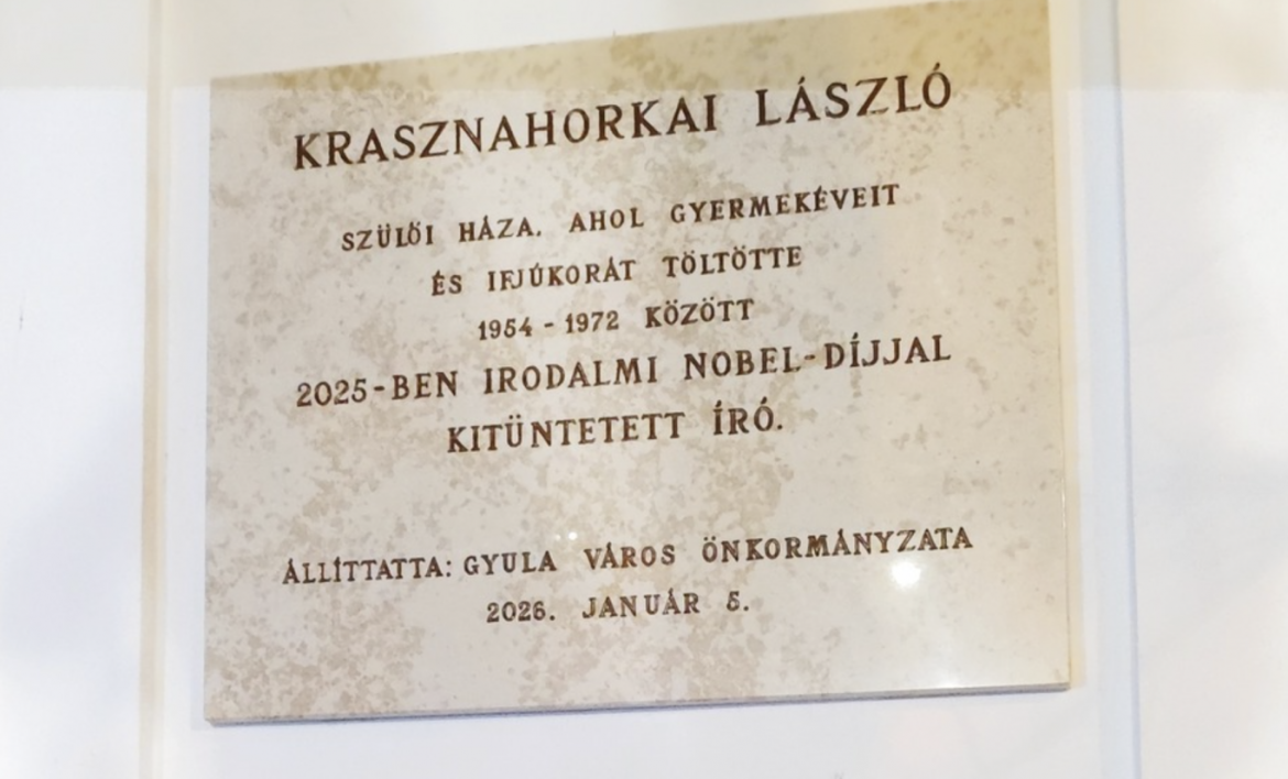 Gyula városában, hétfőn avatták fel az emléktáblát Krasznahorkai Lászlónak, a Nobel-díjas írónak a szülőházánál. Az eseményről Bod Tamás újságíró Facebook-posztjából értesülhettünk. A tábla megszólító szövege igencsak figyelemfelkeltő módon reflektál az írás nehézségeire; egyes interpretációk szerint, éppen a márványba vésett hiba révén vonta maga után a közönség érdeklődését.