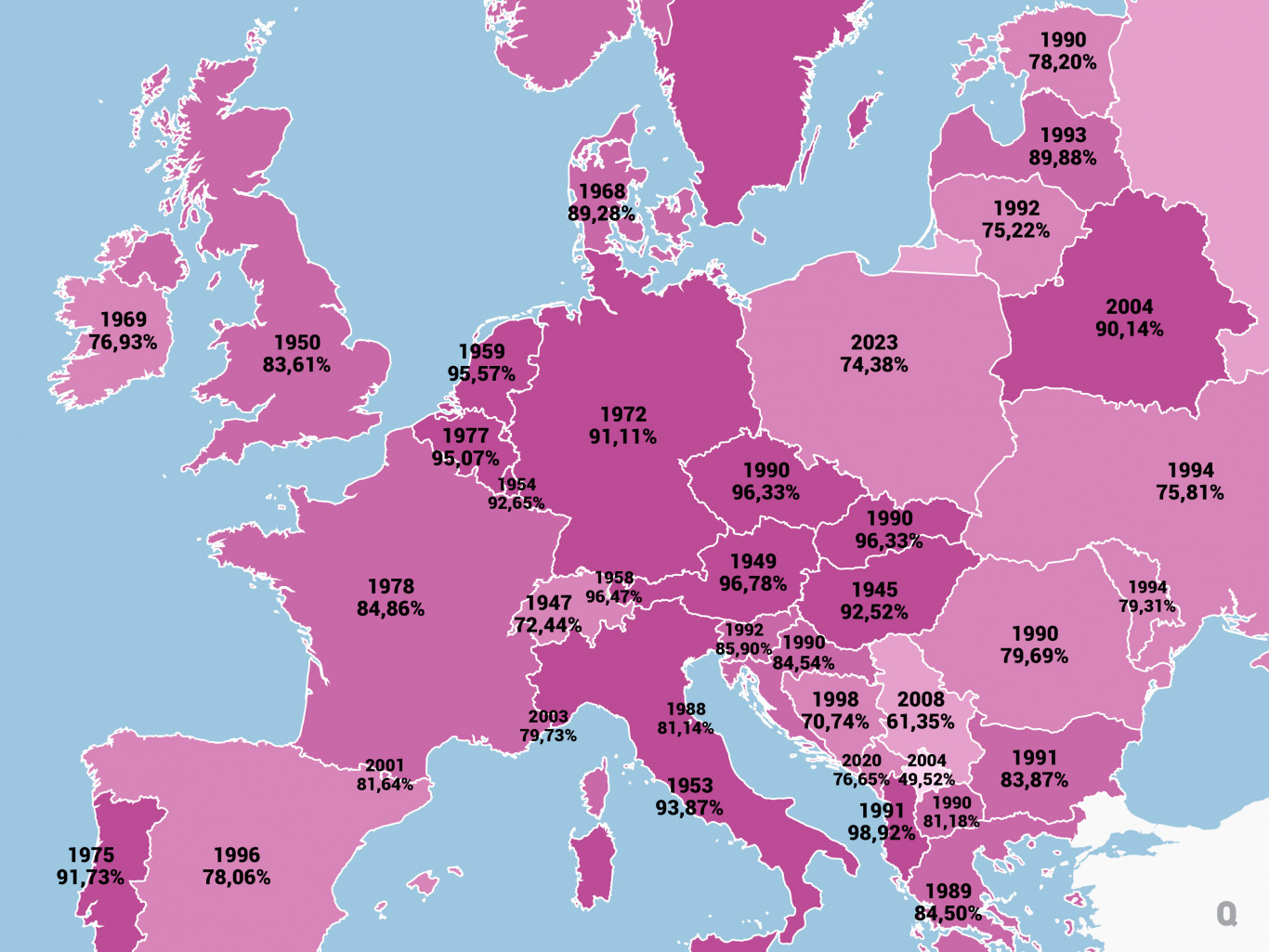 A statisztikák szerint a különböző európai országok választási részvételi adatai jelentős eltéréseket mutatnak. Például Albániában, Enver Hodzsa kommunista rezsimének bukása után, rekordmagas részvételi arányokat könyveltek el, míg a Csehszlovákiát követő két utódállamban is kiemelkedő adatok születtek. A rendszerváltás idején sok helyen a választási lelkesedés az első szabad választások során kiugróan magas volt, de ez általában néhány ciklus elteltével visszaesett. Manapság Csehországban és Szlovákiában a részvételi arányok inkább a 60-70%, Albániában pedig 50% alattiak jellemzők.