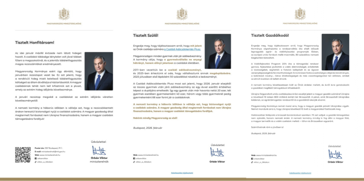 A közelmúltban a magyar választópolgárok több csatornán keresztül kaptak leveleket Orbán Viktor miniszterelnöktől, amelyek előre megtervezett kampányüzeneteknek tekinthetők. E levelek zöme állami értesítések formájában érkezett, de valójában politikai propagandát hordoztak, azt sugallva, hogy ha a Fidesz nem nyer, akkor a magyar emberek pénzt Ukrajnába adományoznak. Érdekes, hogy a leveleket egy évtizeddel ezelőtti Orbán-fotó kíséri, ami a kampány üzeneteihez egyfajta nosztalgikus érzelmet társít.